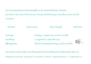 Die Ausstellung ist Mittwoch, Samstag & Sonntag jeweils von 14.00 bis 17.00 Uhr geöffnet.