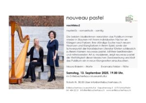 nouveau pastel Tickets Fr. 30.00 über info@entlebucherhaus.ch. Einlass und Bar offen ab 18.30 Uhr. Wir freuen uns auf euren Besuch! + Zu Google Kalender hinzufügen + iCal / Outlook exportieren Datum 13. September 2025 Abgelaufen Uhrzeit 19:00 - 21:00