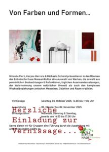 Vernissage «Von Farben & Formen» + Zu Google Kalender hinzufügen + iCal / Outlook exportieren Datum 5. Oktober 2025 Abgelaufen Uhrzeit 14:00 - 17:00