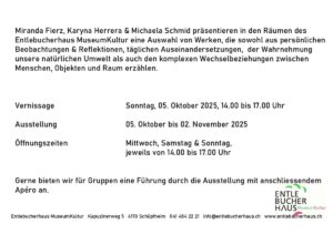 Die Ausstellung ist Mittwoch, Samstag & Sonntag jeweils von 14.00 bis 17.00 Uhr geöffnet.